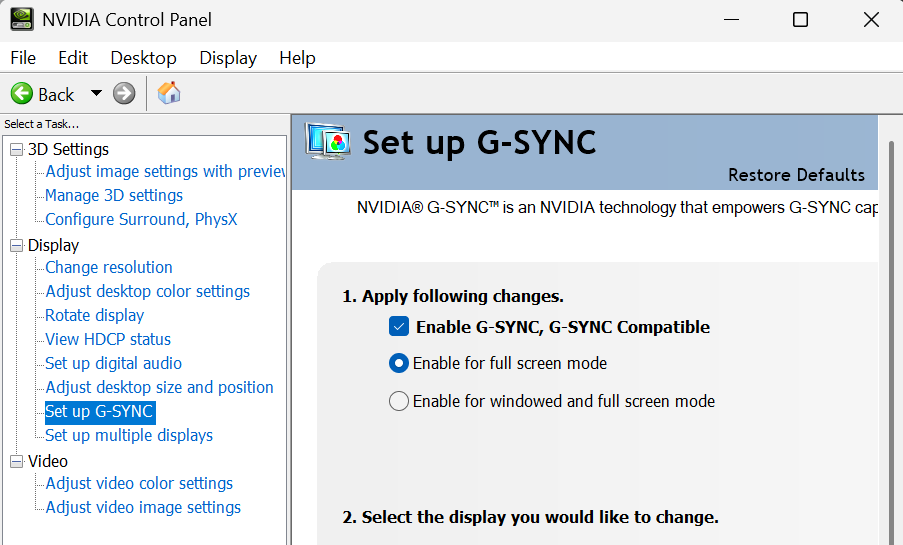 The process is similar in AMD's Adrenalin software: Select Gaming, then Display, and make sure FreeSync is on.
